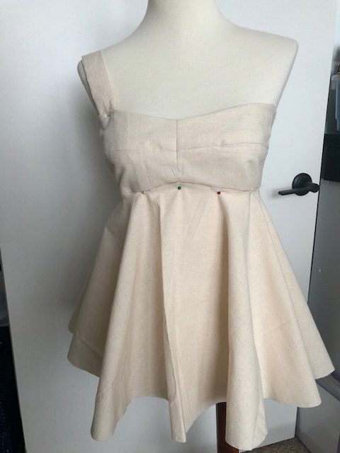 I think the muslin looks really good! Ignore that little blip in the underbust- I did fix that later, lol. But upon trying it on I felt that the two tiers of peplum were a bit much. They are very full so I think they overpower my frame cuts me a bit. It also kinda looks like I need to be standing on top of a cake, lol, or a bit fairy-ish or like I’m wearing a dress that is too short. I don’t think it works for me. I am going to edit it and remove the upper peplum- it looks more streamlined.