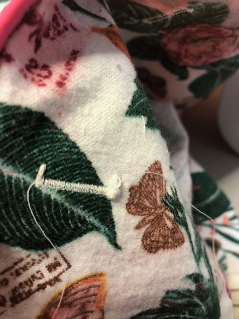Since I’ve made pj pants before, I decided to tackle the pants first. I was able to get these done on Days 1 and 2. Instructions were the same as all the other patterns I’ve sewn. Insert one leg into the other, turn inside out and ta-da! Pants. I had to chop off 4.5″ in the length since this pant as a cuff.