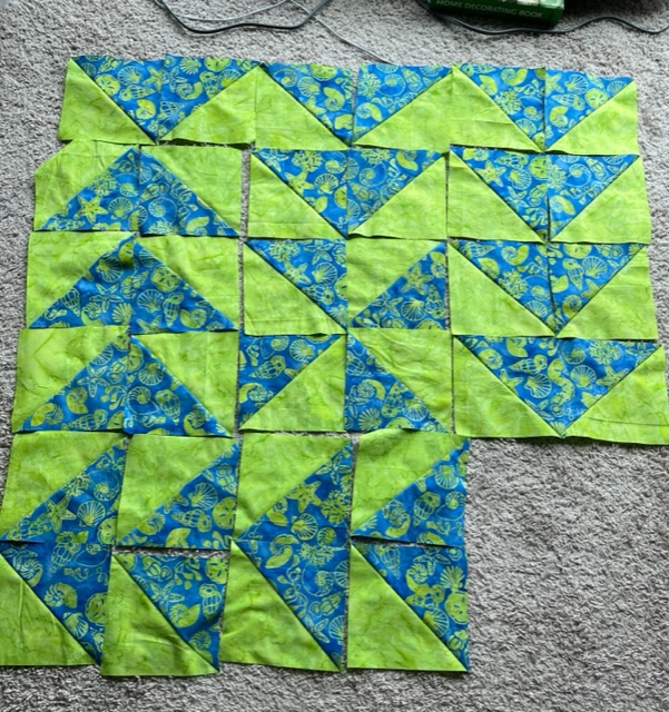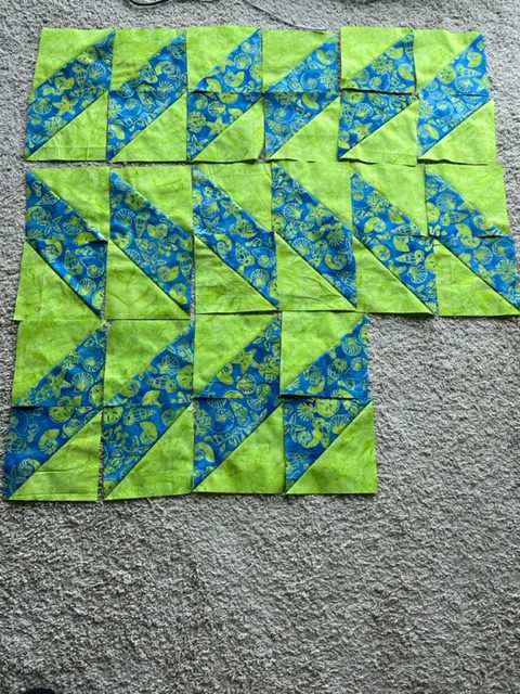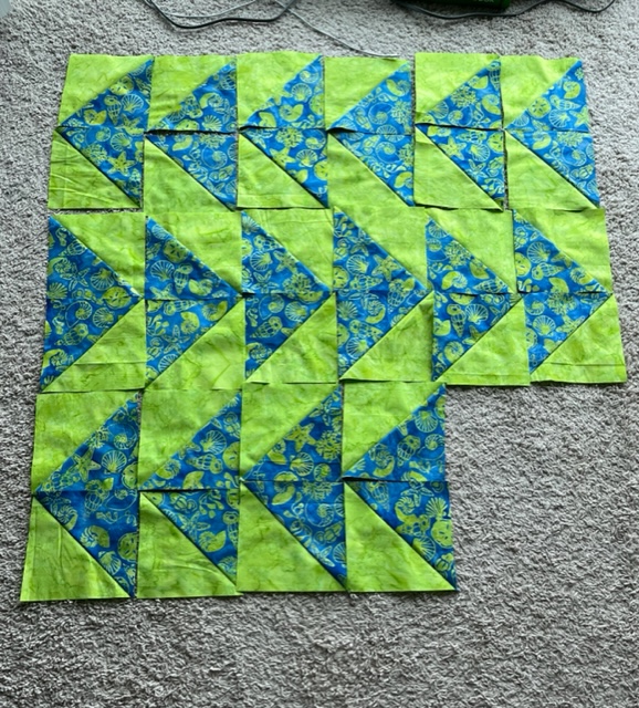After creating my half square triangles I played with the layout. This is what the Dancing Geese pattern is supposed to look like: