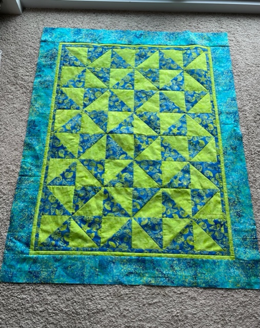 Another 3 yard quilt is done! This quilt is different in that I started with Fabric Cafe’s “Dancing Geese” pattern but ended up with a completely different design. Wait, what?! Allow me to explain.