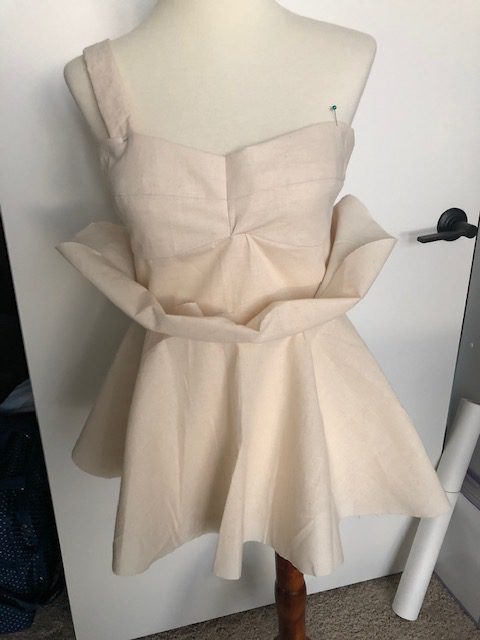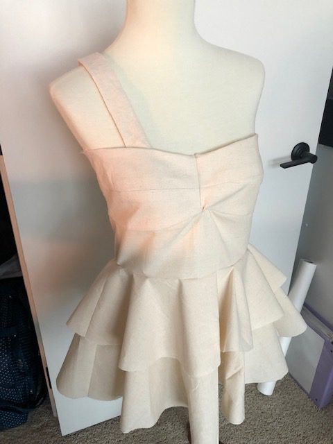 I think the muslin looks really good! Ignore that little blip in the underbust- I did fix that later, lol. But upon trying it on I felt that the two tiers of peplum were a bit much. They are very full so I think they overpower my frame cuts me a bit. It also kinda looks like I need to be standing on top of a cake, lol, or a bit fairy-ish or like I’m wearing a dress that is too short. I don’t think it works for me. I am going to edit it and remove the upper peplum- it looks more streamlined.