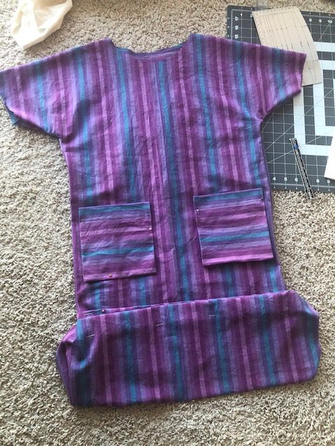 Chopped off 5 inches in length during flat pattern stage (trying to decide length). Ended up hemmed this up 2 inches twice – the pattern wants you to do this at 1.25″ twice.