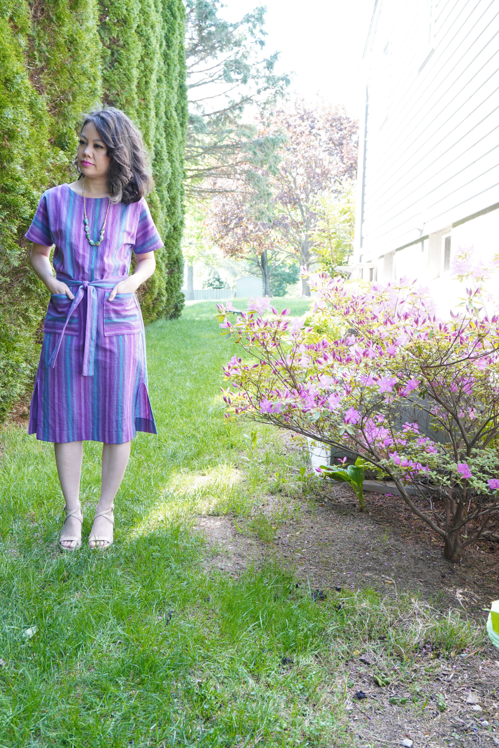 In the end it turned out a lot better than I was expecting. I styled it different ways. Belted it feels very casual yet still put together. Unbelted it feels boho-chic. I don’t know if I would ever wear it unaccessorized since it does feel a little nightgown-ish. You could probably double this dress as a beach caftan. I think my fave is the boho look.