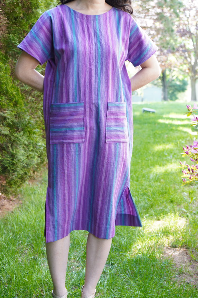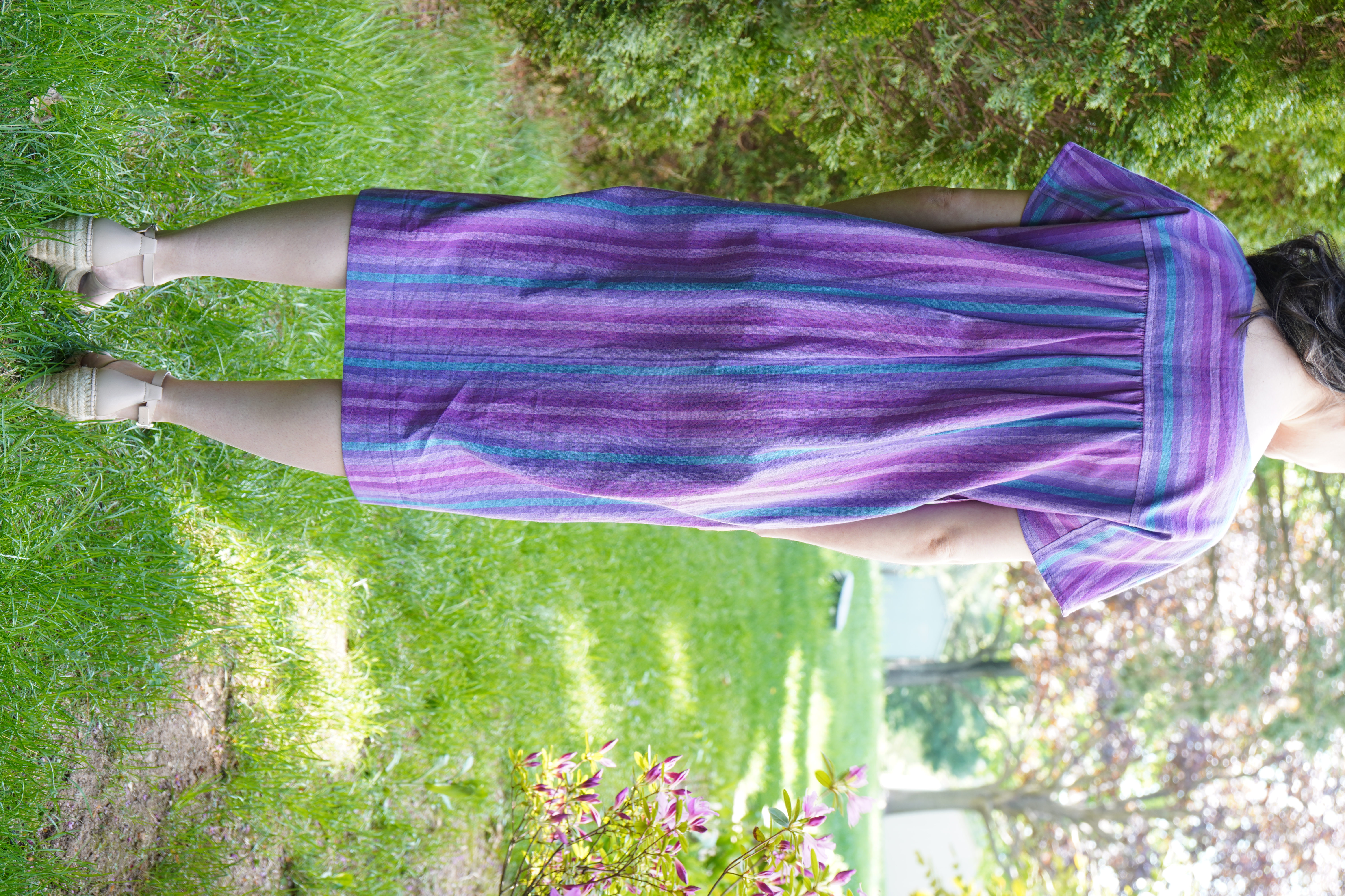 I chose a fun striped woven. I smiled when I saw the shades of purple and turquoise. It pretty much looks like everything else I have sewn and I almost put it down for that reason. But you know what?! WHY NOT. I say if you are naturally drawn to something just go with it. It’s ok to have a million pink dresses in your closet. Obviously that is your style so just go for it. That’s why we sew! To make things that reflect our personal style and to make things we feel great in.🙂