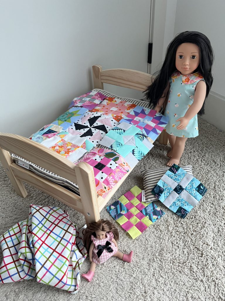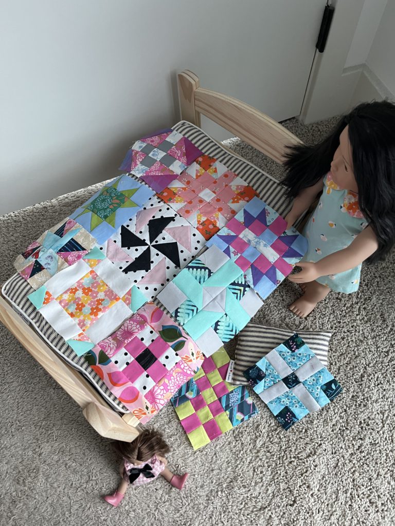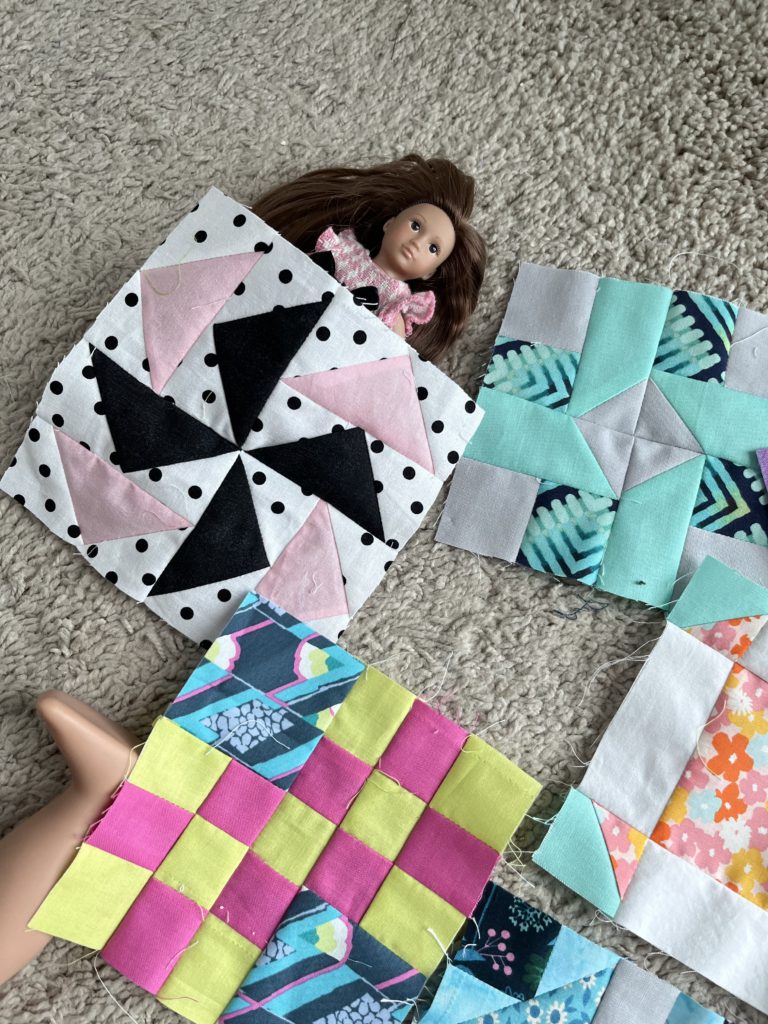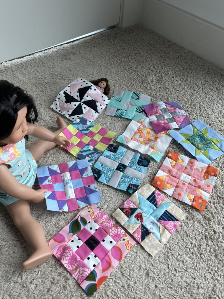 In true fashion, Pia got in on the action. Always thinking I’m sewing for her, she started selecting the mini blocks.