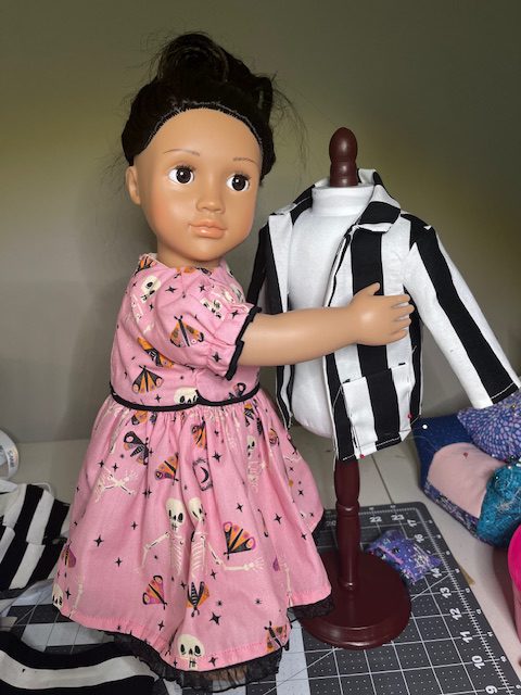 As soon as she was all dressed up I laughed. I can’t help but laugh whenever I make something for this little lady. I put in so many work hours for Pia, the DOLL. Certainly a lot more time than myself. But I can’t help it. If something brings you joy keep doing that….it’s good for the mortal soul. ❤️