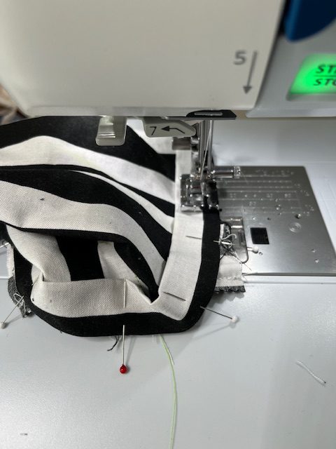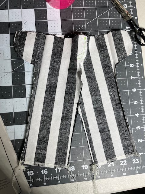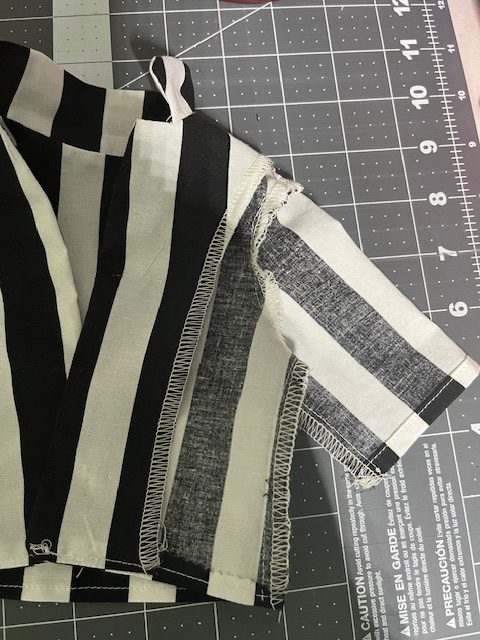 I had already serged the arms and completed the darn thing when Pia told me I had sewn the sleeves on wrong. The stripes are supposed to be horizontal not vertical. Ok little lady you could have told me that earlier! Some supervisor. I swear she does it to spite me.