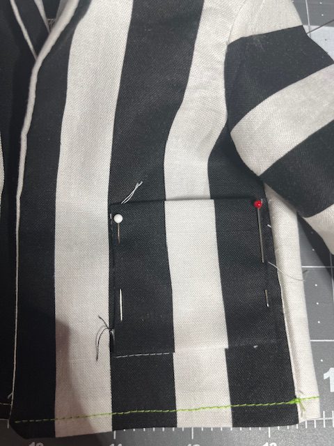 The suit jacket was mostly an easy sew. The collar is basted on and there are neck and front facings. Real pockets too!
