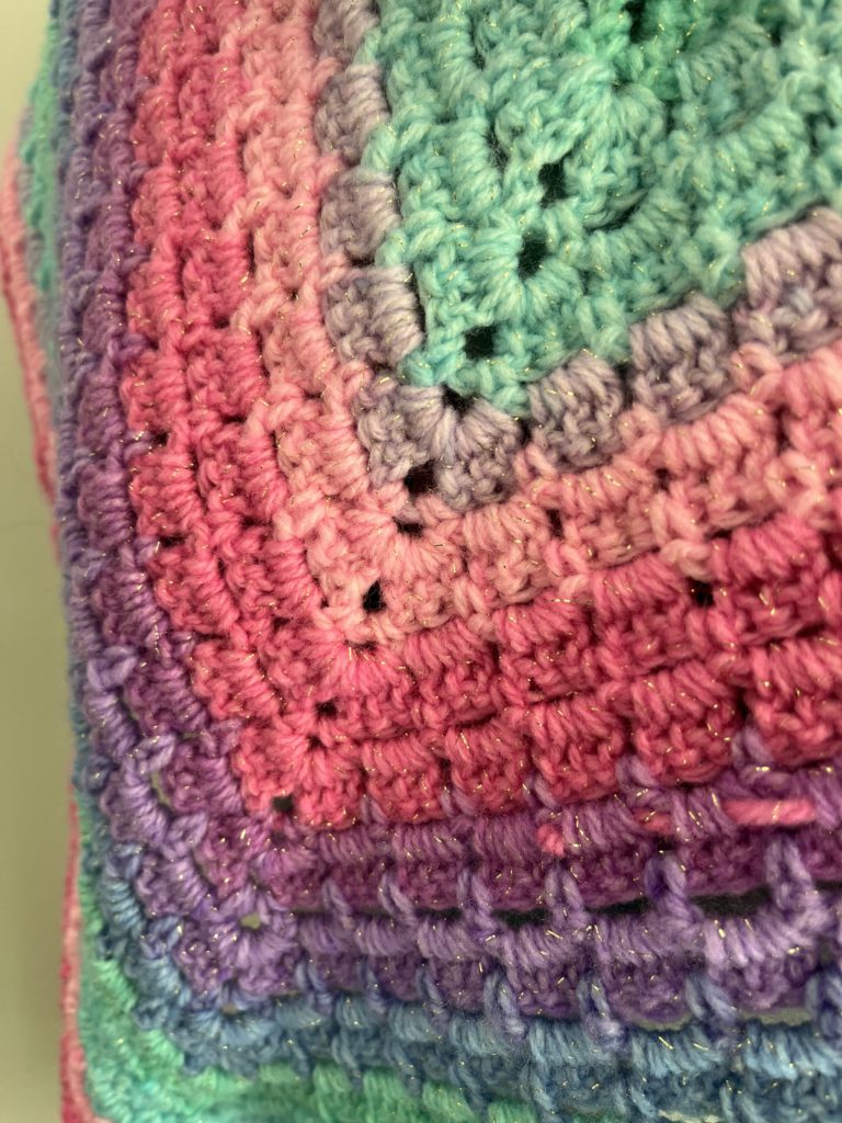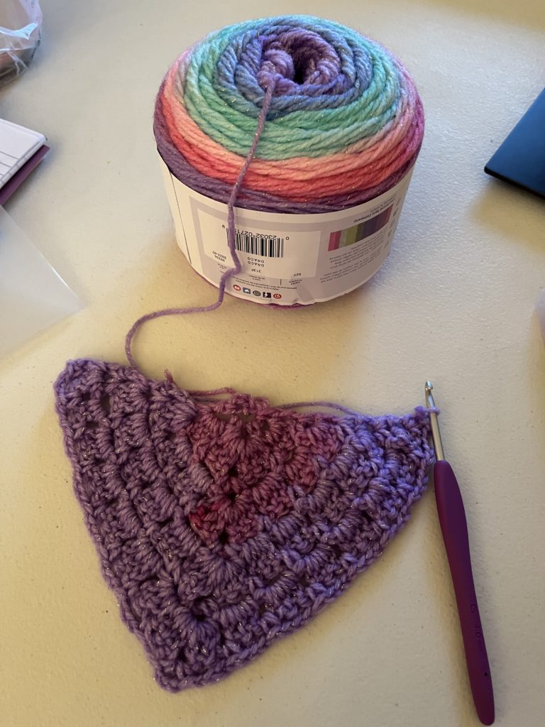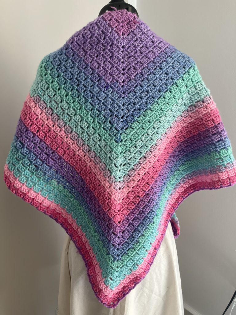 Boy am I glad it’s 2024. Sharing with you my completed crochet shawl. This shawl has special meaning to me since I started it last year during the darkness of Winter. I knew it’d take awhile to complete (possibly spilling into the new year) so I chose happy colorful colors. I am calling this my “Hope” shawl. The Hope that eventually the darkness ends and there is Light. After the rain there is a rainbow, which is a symbol of Hope. Yada yada yada, let’s get to the shawl, shall we?? 😉