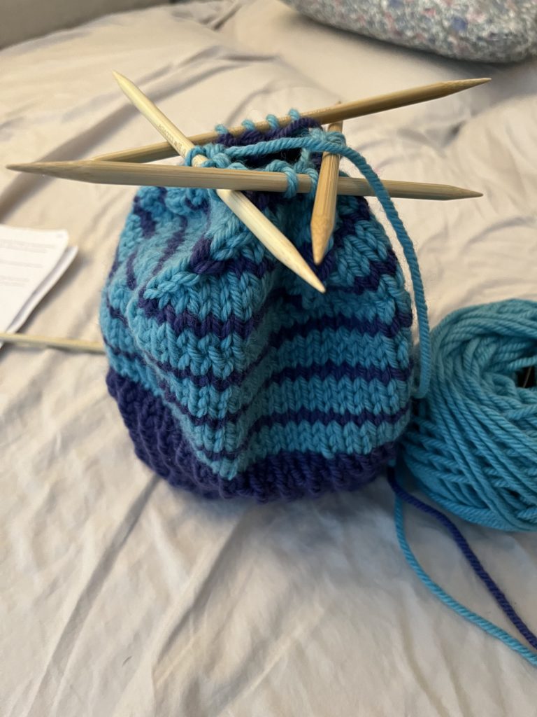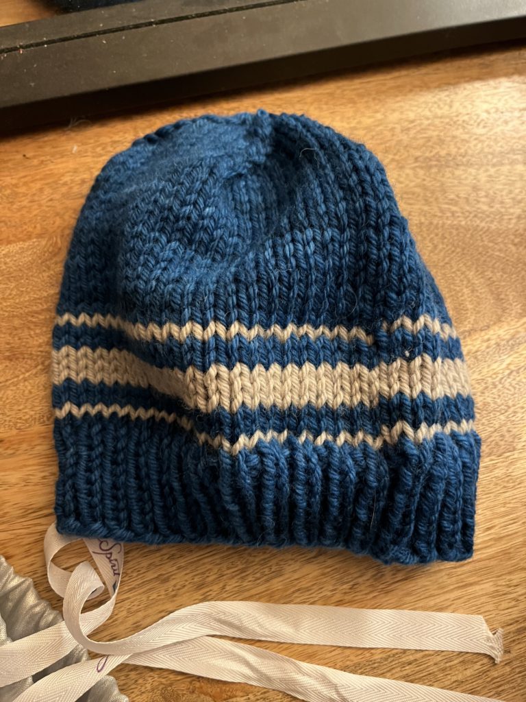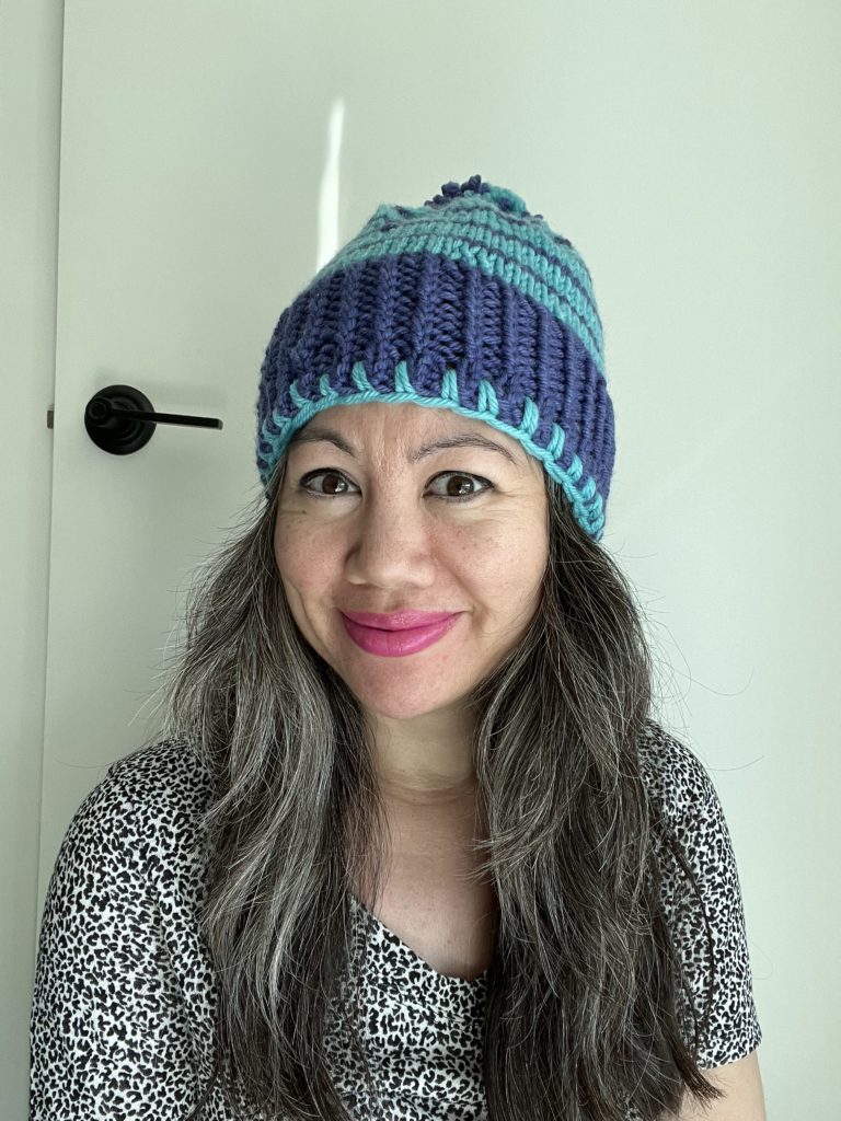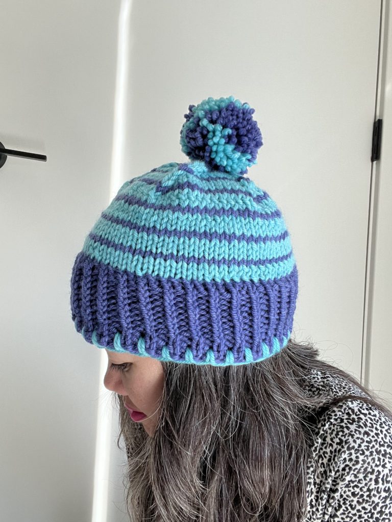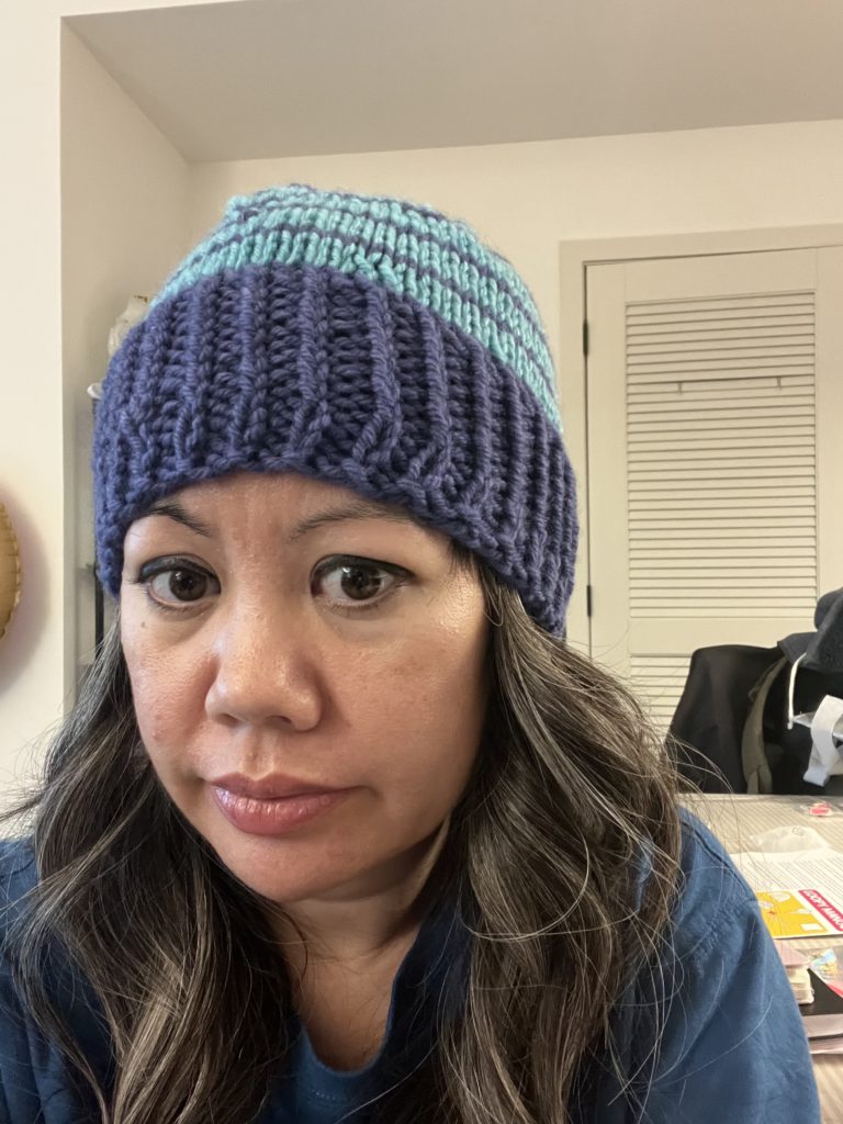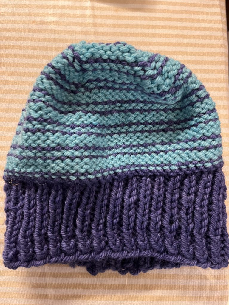 I’m really happy with my first completed knitting project. I wasn’t sure at first but after fixing the proportion issue it is now a hat I’d actually wear!