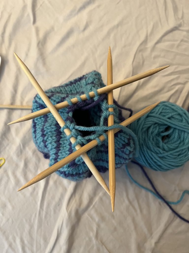 Once I got to the double pointed needles to decrease at the top it was looking all kinds of crazy and complicated. But it wasn’t that bad.