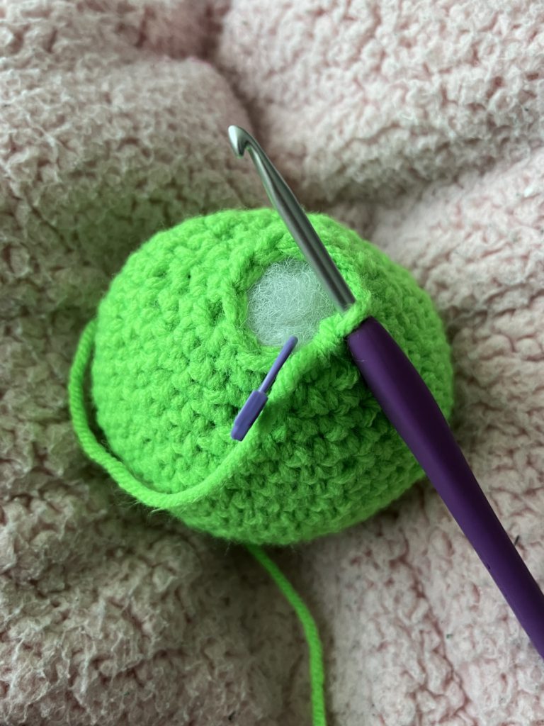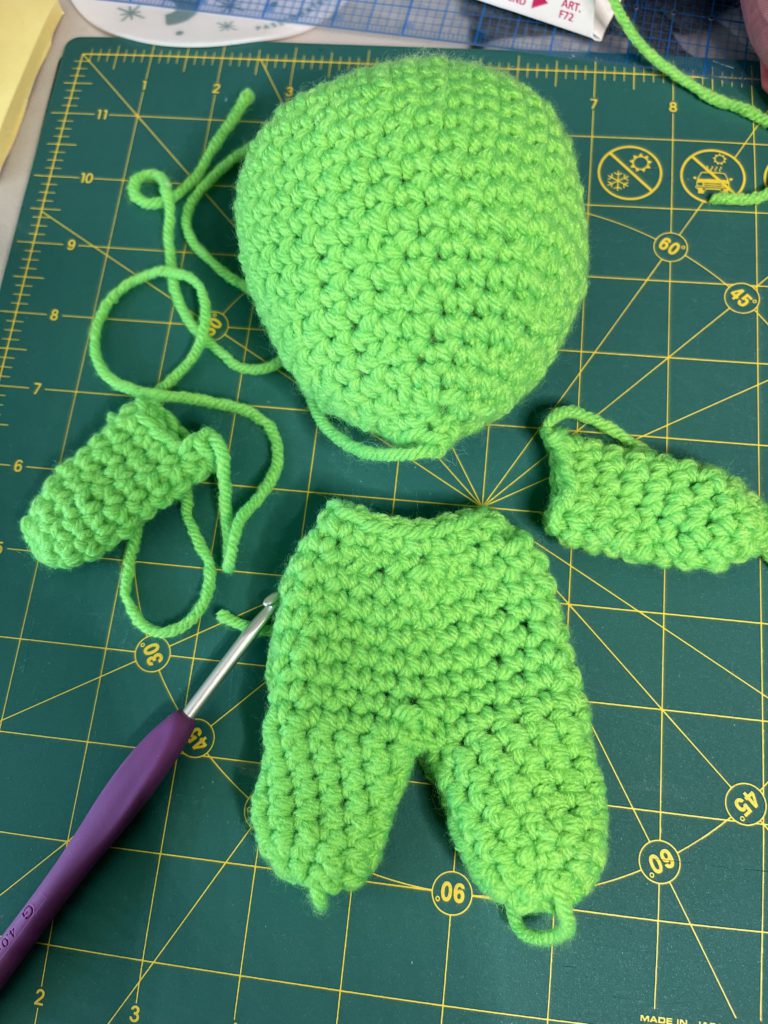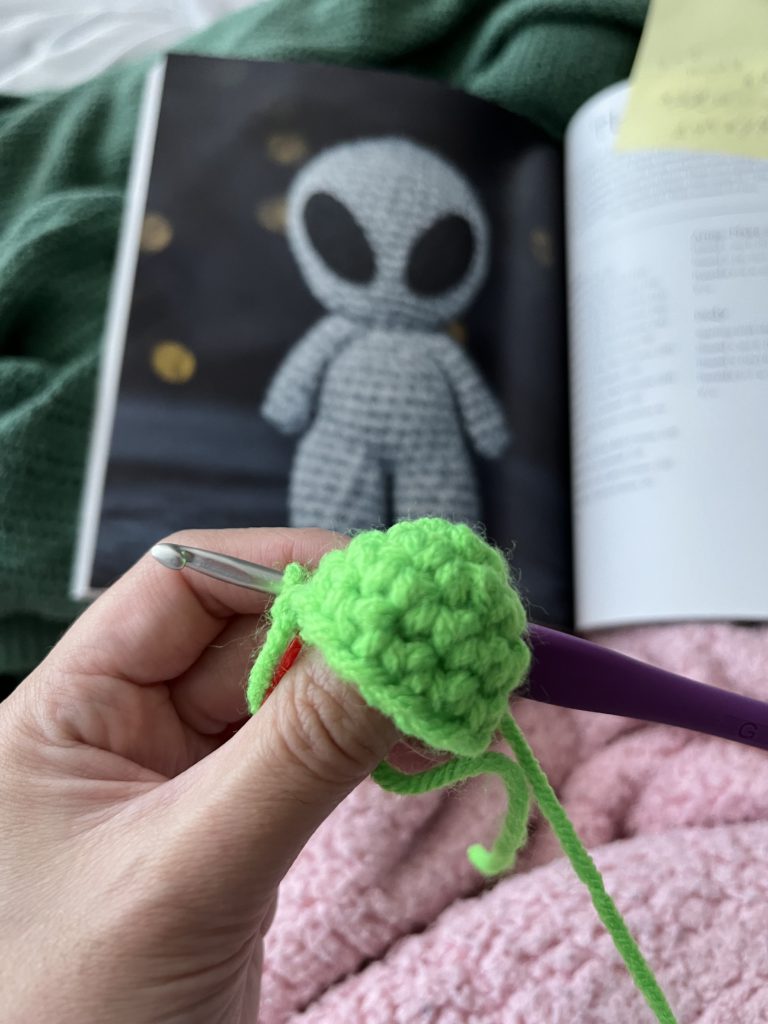 First off, I was not expecting amigurumi to be simple. They look more complicated than they are. This alien pattern only used the single crochet stitch. Yes, the entire thing was just the single crochet! A beginner crocheter could make this.